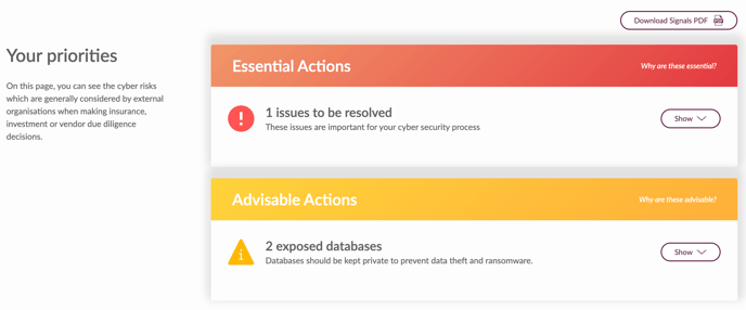 You can do this by clicking on the Download Signals PDF button above the essential risks tile, on the right hand side.