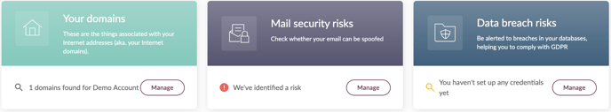 Mail security risks isolates and draws attention to the specific risks around email spoofing. Here you can find information on whether your domains have the necessary SPF and DMARC protections in place to prevent you being spoofed! For more information on email risks see: Email Risks